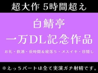 ASMR 【注目】同人サークル【白鯖亭】『【5時間超え】実演ガチ射精、飲酒、メスイキ、寝落ち。一万DLお祝いで色々やっちゃいました【白鯖亭一万DL記念作品】』(品番:d_706814)||2025-11-29発売の7本 (約315分)+α