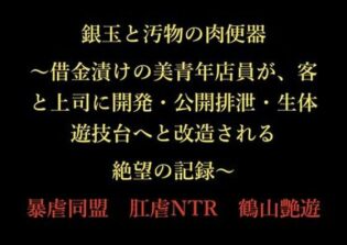 FANZA同人 【注目】同人サークル【暴虐同盟】『銀玉と汚物の肉便器 〜借金漬けの美青年店員が、客と上司に開発・公開排泄・生体遊技台へと改造される絶望の記録〜』(品番:d_725528)||2026-01-22発売の43ページ